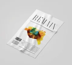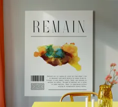 "REMAIN | 19" zeigt eine dynamische Farbexplosion mit fließenden, ineinander übergehenden Tönen von Gelb, Orange, Braun und Blau. Die Farbverläufe erinnern an Aquarell oder Tinte, die sich in Wasser ausbreitet, und erzeugen eine faszinierende Mischung aus Transparenz und Intensität. Die abstrakte Form könnte Assoziationen an eine Landschaft, eine Wolke oder eine organische Struktur wecken, bleibt aber bewusst offen für Interpretation. Die weichen Übergänge und die lebendige Farbpalette vermitteln ein Gefühl von Bewegung und Energie.