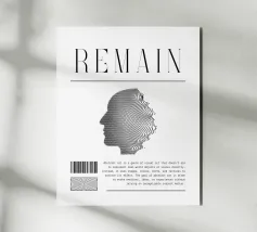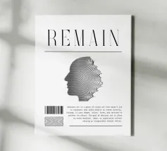 "REMAIN | 22" Ein Gesicht formt sich aus einem Raster feiner Punkte, während es sich nach rechts hin aufzulösen scheint. Die abstrakte Darstellung vermittelt den Eindruck von Vergänglichkeit und Veränderung. Die Pixelstruktur spielt mit der Grenze zwischen Form und Auflösung und lädt zur Reflexion über Identität und Erinnerung ein.