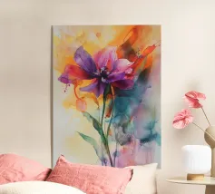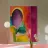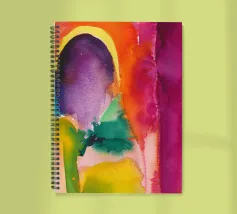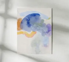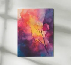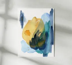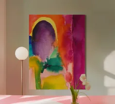 Pittura astratta ad acquerello con vivaci tonalità gioiello, che ricorda un'architettura marocchina stilizzata