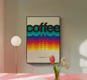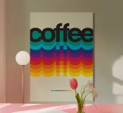 retrò, vintage, caffè, caffeina, americano, cappuccino, flatwhite, testo, colorato, poster, stampa