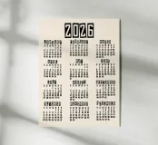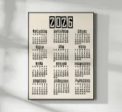 Pulito, audace e senza tempo: il calendario Retro Minimal 2026 è un'opera di stile e struttura. Il suo semplice sfondo beige e la tipografia di ispirazione vintage lo rendono un elegante accento da parete che si adatta perfettamente a qualsiasi interno. Perfetto per chi apprezza un design pratico ed estetico.