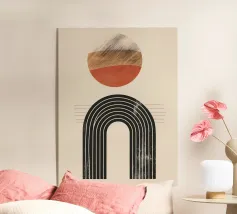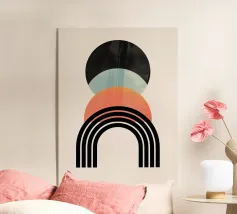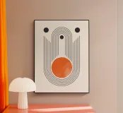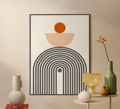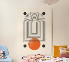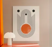 Questo design moderno combina forme geometriche minimaliste con un arancione deciso e linee delicate in nero. La struttura chiara e l'accattivante gioco di colori creano un equilibrio perfetto tra le vibrazioni retrò e l'estetica contemporanea. Ideale per murales, cuscini, tazze o cover per telefoni cellulari, questo motivo si impone con stile in soggiorni, uffici o come regalo creativo. Un must per gli amanti dell'arte minimalista e geometrica.