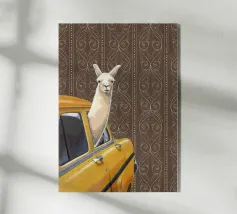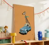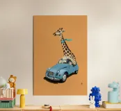 Illustrazione umoristica delle altezze che una giraffa può raggiungere, guidando una 2CV alla moda. Non c'è che da essere orgogliosi di alzare la testa per amore della propria auto!