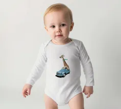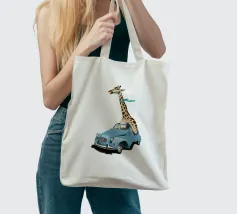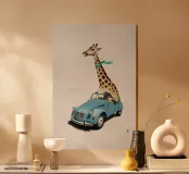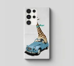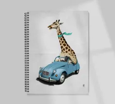 Illustrazione umoristica delle altezze che una giraffa può raggiungere, guidando una 2CV alla moda. Non c'è che da essere orgogliosi di alzare la testa per amore della propria auto!