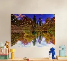 La tecnica del "riflesso degli alberi in un laghetto" è un classico espediente stilistico fotografico utilizzato nella fotografia di paesaggio e naturalistica. Si basa sul fatto che l'acqua calma agisce come uno specchio e gli alberi o altri elementi del paesaggio appaiono due volte nell'immagine: una volta reali e una volta come riflessi.