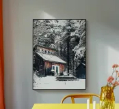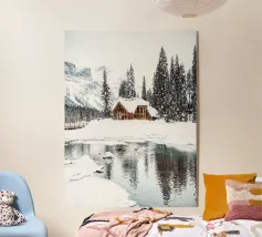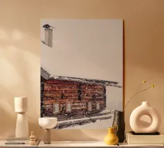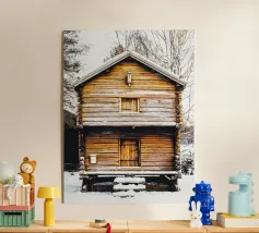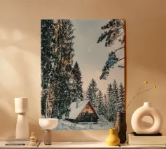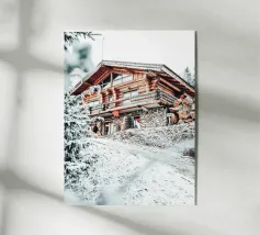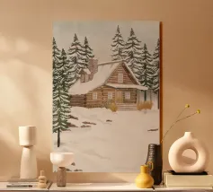 Questo affascinante motivo mostra una rustica capanna di legno circondata da alberi innevati e da una profonda magia invernale. Le calde tonalità del legno della facciata contrastano magnificamente con il bianco brillante della neve, creando un'atmosfera invitante e tranquilla. Perfetto per opere d'arte da parete, cuscini o tazze, questo disegno porta l'intimità e il romanticismo di una capanna invernale direttamente a casa vostra. Ideale per gli amanti della natura, per i fan dello stile scandinavo e per chiunque apprezzi la magia dell'inverno.