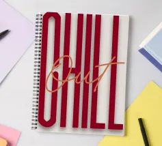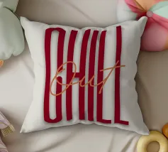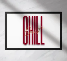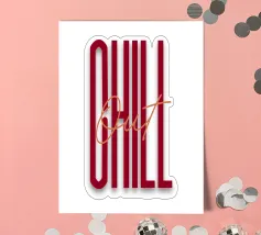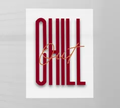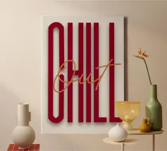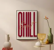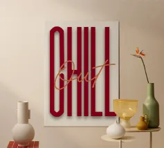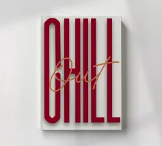 Elevate your interior with this striking piece of contemporary typography. The design features an architectural, ultra-condensed font in a deep burgundy hue, creating a powerful sense of vertical rhythm. This structured foundation is elegantly softened by a warm orange script overlay, adding a layer of fluid movement. Subtle drop shadows provide a professional, three-dimensional depth against the clean, neutral background. It is a perfect focal point for a modern living room or office space designed to inspire calm and creative focus.