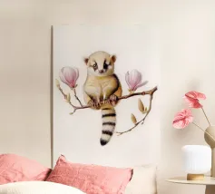 Illustrazione comica dell'intreccio di due significati della parola "squillo". Il paziente lemure siede in cima al telefono in attesa che squilli, con la coda ad anello avvolta intorno.