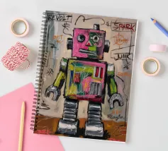 A robotic figure with a pink head and green body stands against a charged, electrified backdrop, emphasized by the words 'REVOLT' and 'SPARK.'