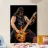 A guitarist with Iong blond hair plays intensely on stage with a brown electric guitar.