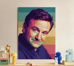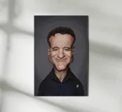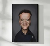 Caricatura umoristica del noto attore, star del cinema e comico americano Robin Williams. Una delle caricature realizzate per la serie Celebrity Sunday, in cui un personaggio famoso viene ritratto in un giorno. L'idea è di mostrarli come in una fototessera per avere coerenza.