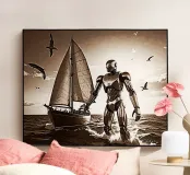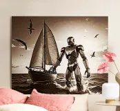 ROBOT AVEC VOILIER. Sépia plexiglass