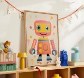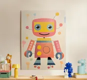 Aggiungete una scintilla di gioia alla stanza del vostro bambino con questo adorabile e colorato poster da parete a forma di robot! Caratterizzato da un allegro robot con vivaci tonalità di rosa, giallo e blu, questo poster è stato progettato per ispirare creatività e giocosità. Perfetto per asili nido, sale giochi o aule scolastiche, questo divertente disegno crea un'atmosfera calda e accogliente. Immaginate questo vivace poster a forma di robot che illumina la cameretta del vostro bambino, migliora la sua stanza dei giochi o aggiunge fascino a una classe.