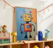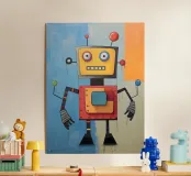 Aggiungete una scintilla di creatività a qualsiasi stanza con questo vivace poster da parete con robot! Caratterizzato da un robot eccentrico e colorato con audaci dettagli geometrici su uno sfondo blu e arancione, questo poster è perfetto per creare un ambiente divertente, giocoso e fantasioso. Ideale per le stanze dei bambini, le sale da gioco, le aule scolastiche o gli interni moderni che abbracciano un arredamento audace. Immaginate questo stravagante poster robotico che illumina una stanza dei giochi, aggiunge energia a una classe o conferisce personalità a uno spazio di lavoro creativo. I suoi colori vivaci e il suo design stravagante lo rendono un punto focale coinvolgente e memorabile per qualsiasi stanza.
