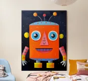 Esplodete nella creatività con questo robot cosmico da parete, che raffigura un allegro robot arancione sullo sfondo di un cielo notturno stellato. Il design giocoso e i colori vivaci lo rendono perfetto per le camerette dei bambini, le stanze dei giochi o qualsiasi spazio che abbracci l'immaginazione e l'amore per lo spazio. Immaginate questo poster robot galattico che illumina una stanza dei giochi, aggiunge carattere a una cameretta o valorizza una stanza per bambini a tema spaziale. I suoi colori vivaci e il suo design affascinante lo rendono un pezzo forte per qualsiasi arredamento.