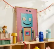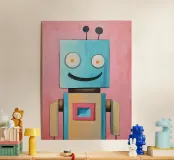 Ravvivate qualsiasi stanza con questo allegro robot da parete! Caratterizzato da un sorridente robot blu con uno sfondo rosa, questo disegno vivace e giocoso è perfetto per stimolare la gioia e la creatività. Esposta in una cameretta, in una stanza dei giochi o in un'aula scolastica, questa opera d'arte aggiunge un'atmosfera divertente e fantasiosa a qualsiasi spazio. Immaginate questo poster di un robot felice sulla parete di una cameretta giocosa, che illumina una classe o che ispira divertimento nell'angolo creativo di un bambino. I suoi colori vivaci e l'atmosfera allegra lo rendono un'aggiunta coinvolgente a qualsiasi spazio.