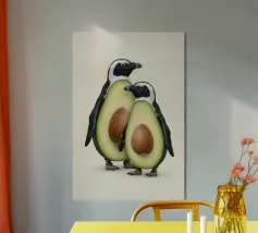 Illustrazione comica di una coppia di pazzi pinguini Rockhopper che si dedicano al riff che può riassumere la loro eredità rock e le loro vibrazioni musicali.