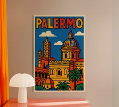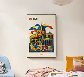 A bold, graphic celebration of Rome, where ancient grandeur meets contemporary design. Iconic landmarks are layered into a confident composition, rendered with clean geometry and vibrant colour blocking that captures Rome’s timeless presence without literal detail. Classical forms and monumental silhouettes create depth and rhythm, conveying history, power, and enduring beauty.