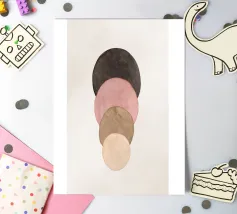 Aggiungete un tocco di fascino minimalista al vostro spazio con questa vibrante stampa d'arte astratta moderna di metà secolo, caratterizzata da un'ipnotica miscela di forme geometriche e fluide di acquerello su uno sfondo neutro morbido e cremoso. Con la sua calda atmosfera scandinavo-giapponese, non è solo arte: è un'atmosfera.