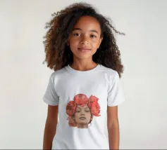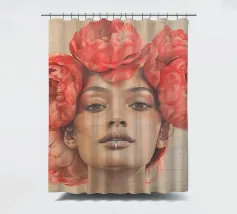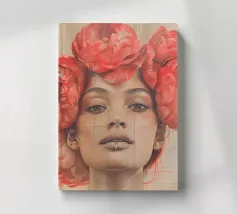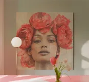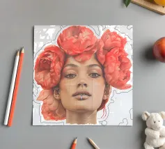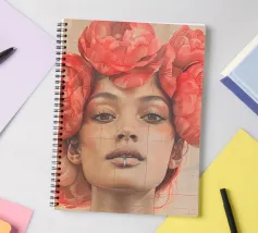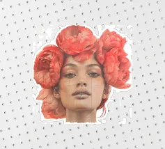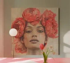 Ritratto di una donna attraente con piercing e fiori che le adornano la testa, un disegno che emana bellezza e fascino. Questa opera d'arte alla moda si abbina a qualsiasi abbigliamento e aggiunge un tocco di glamour e di grinta a qualsiasi spazio.