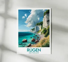 Design minimalista e decorativo per le vacanze estive sul Mar Baltico, con una bella spiaggia e le famose scogliere di gesso bianco della costa baltica di Rügen. Design per le vacanze estive per tutti coloro che amano andare in vacanza sulla costa baltica tedesca o sull'isola di Rügen.