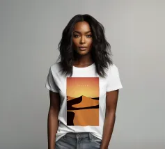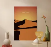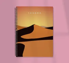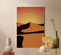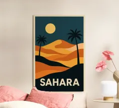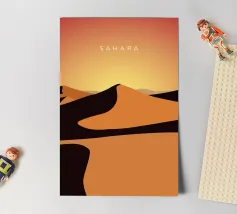 Disegno di viaggio minimalista del deserto del Sahara, che si estende in molti Paesi africani ed è una popolare meta turistica.