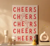 Cheers Cheers, Cocktail, Carrello bar, cin cin, prost, rosso , Tipografia, alcolici