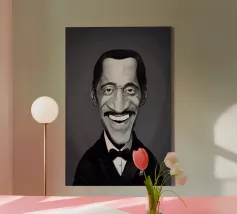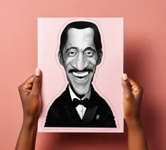 Illustrazione caricaturale umoristica del noto attore americano e hollywoodiano, star del grande schermo e crooner; Sammy Davis Jnr. Una delle caricature realizzate per la serie Celebrity Sunday, in cui un personaggio famoso viene ritratto in un giorno. L'idea è di mostrarli come in una fototessera per avere coerenza.