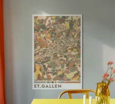 La città di San Gallo in una splendida mappa a colori. La città di San Gallo con la mappa dettagliata della città divisa in diversi colori si adatta come murale a casa o in ufficio.