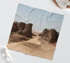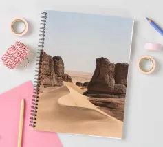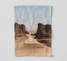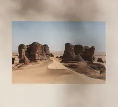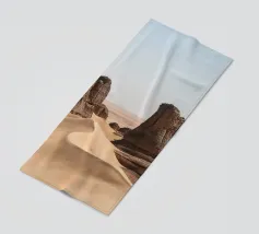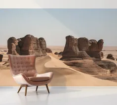 Sand dune between rocks in the Sahara desert. Landscape scene in the southern part of Algeria, in the beautiful Sahara desert.