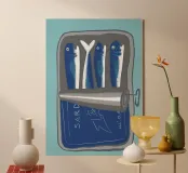 Sarde in scatola con sfondo blu, perfette per chi ama le atmosfere estive e i pesci.