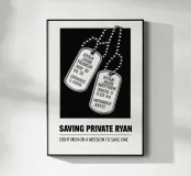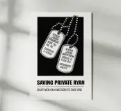 Stampa "Salvate il soldato Ryan", Poster cinematografico alternativo, WW2, piastrine dell'esercito, Minimalista, Arte da parete, Stampe di qualità in bianco e nero, Regalo per i fan del cinema