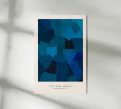 Illustrazione geometrica astratta nei toni del blu, che combina cerchi e quadrati trasparenti per creare una composizione armoniosa e moderna. Le variazioni di tonalità e texture aggiungono una profondità visiva accattivante, ideale per evocare un'atmosfera contemporanea e sofisticata. Questo disegno astratto è perfetto per valorizzare uno spazio o un progetto con un tocco artistico ed elegante.