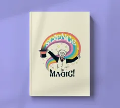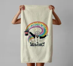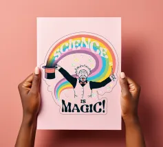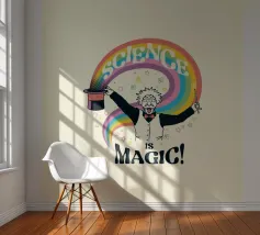 Un'opera d'arte che raffigura Albert Einstein vestito da mago, che evoca un vibrante arcobaleno dal suo cappello, accompagnato dalla frase "Science Magic". Questo delizioso pezzo è un regalo ideale per chiunque apprezzi l'incanto della scienza e le sue miriadi di meraviglie.