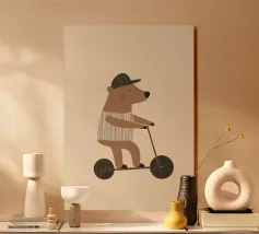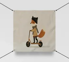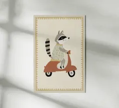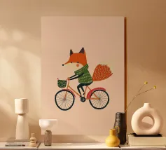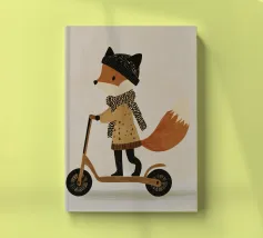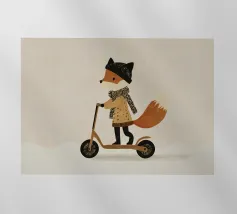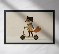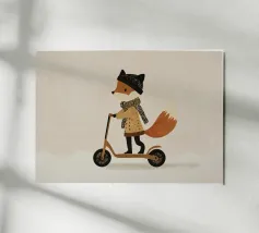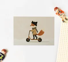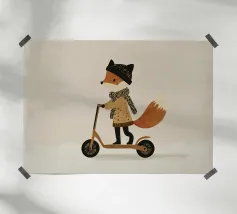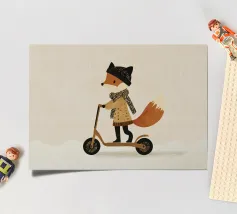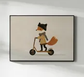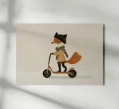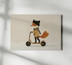 Fox Scooter Wall Art, Whimsical Woodland Nursery & Kids Room Decor
