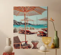 A tranquil coastal terrace bathed in sunlight, overlooking the endless blue of the ocean. The perfect spot to relax, breathe, and let your worries drift away.
