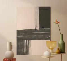 "Sediment" è uno studio sul tempo accumulato. La composizione sovrappone ardesia scura, ocra polverosa e bianco intenso per suggerire diverse ere geologiche. I bordi ruvidi e strappati rappresentano i processi naturali di spostamento ed erosione della terra, mentre la forma nera e profonda in primo piano è il segno finale e pesante, il residuo irrisolto lasciato dopo secoli di pressione. È un'archeologia visiva dell'umore e della memoria.