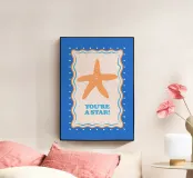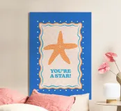 Stella marina arancione con cornice decorativa su sfondo blu cobalto. Con il testo Your A Star! Perfetto per dare alla vostra stanza un'atmosfera da spiaggia.