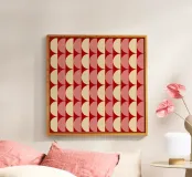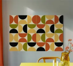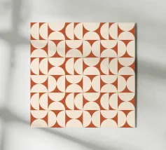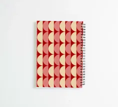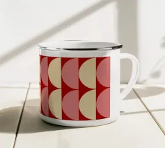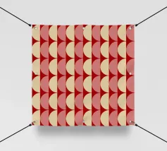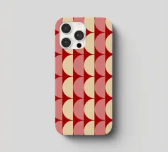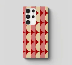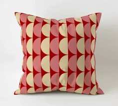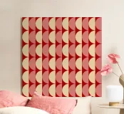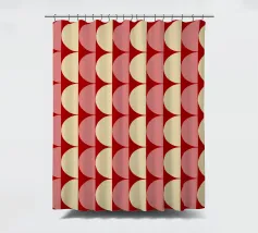 Semicerchi rosa e bianchi retrò su sfondo rosso, che aggiungono calore e fascino giocoso a qualsiasi stanza. Perfetti per interni moderni di metà secolo, eclettici e di ispirazione vintage. Ideali per decorazioni murali e arredamento della casa.