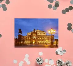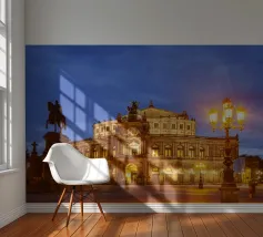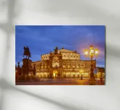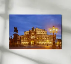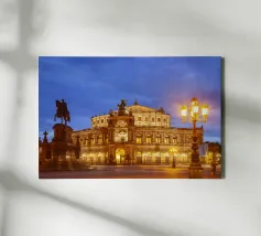 Il teatro dell'opera di Dresda Semperoper e il monumento a Re Giovanni nella piazza del teatro di Dresda di notte, Sassonia, Germania, Europa | Il teatro dell'opera Semperoper e la statua di Re Giovanni nella piazza del teatro di Dresda di notte, Sassonia, Germania, Europa