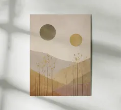 Questa composizione geometrica esplora la semplicità e la stratificazione. I triangoli sovrapposti formano un design pulito e senza tempo che si adatta perfettamente a spazi minimalisti, boho o contemporanei.