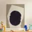 Una grande forma nera irregolare è posizionata al centro su uno sfondo più chiaro a contrasto, dall'aspetto ruvido e strappato. Il design è minimalista, con un'atmosfera astratta e una tavolozza di colori semplice.