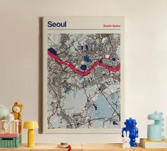 Scoprite il cuore della Corea del Sud con questo poster con mappa dettagliata di Seoul! Le linee chiare e i colori vivaci danno vita alla città e a tutte le sue sfaccettature, mentre la curva del fiume Han accentua dinamicamente il design. Perfetto per gli amanti delle metropoli asiatiche o come elegante decorazione da parete. Quest'opera d'arte combina fascino moderno ed eleganza urbana - un punto di forza per ogni stanza.