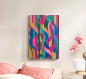 Un audace motivo astratto con un tocco di energia dinamica che simboleggia il movimento e la fluidità. Colori vivaci che evocano temi come l'acqua, la vita e il movimento. Una fusione innovativa di tradizione e modernità per interni contemporanei e minimalisti. Un linguaggio visivo unico che supera i confini culturali.