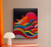 Un audace motivo astratto con un tocco di energia dinamica che simboleggia il movimento e la fluidità. Colori vivaci che evocano temi come l'acqua, la vita e il movimento. Una fusione innovativa di tradizione e modernità per interni contemporanei e minimalisti. Un linguaggio visivo unico che supera i confini culturali.