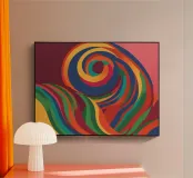 Un audace motivo astratto con un tocco di energia dinamica che simboleggia il movimento e la fluidità. Colori vivaci che evocano temi come l'acqua, la vita e il movimento. Una fusione innovativa di tradizione e modernità per interni contemporanei e minimalisti. Un linguaggio visivo unico che supera i confini culturali.