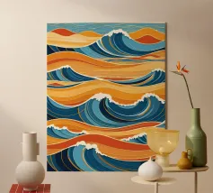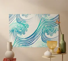 Un audace motivo astratto con un tocco di energia dinamica che simboleggia il movimento e la fluidità. Colori vivaci che evocano temi come l'acqua, la vita e il movimento. Una fusione innovativa di tradizione e modernità per interni contemporanei e minimalisti. Un linguaggio visivo unico che supera i confini culturali.