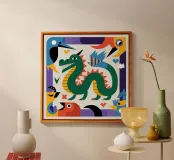 Raffigura un serpente leggendario attraverso dettagli intricati e colori vivaci. Questo dipinto evoca un senso di mistero e avventura, invitando gli spettatori ad addentrarsi nel mitico mondo dei serpenti.