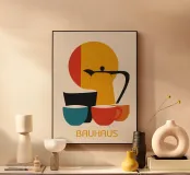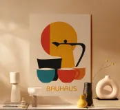 🫖 Un'opera d'arte vettoriale elegante e geometrica che presenta un set da tè e caffè di ispirazione Bauhaus. Una fusione di forma e funzione, questo design modernista celebra il minimalismo, la simmetria e gli audaci contrasti di colore, un elegante cenno al rivoluzionario movimento artistico. Perfetto per gli amanti del design!
