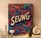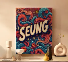 Seung "Vittoria e successo" con fiori in un motivo colorato e sinuoso esprime il significato del nome.